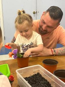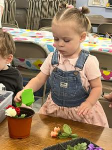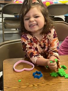 The class includes singing, music, story-time, and arts & crafts! Through the fun of music and art, we cover subjects such as colors, numbers, letters, seasons, sharing, and encouraging friends.